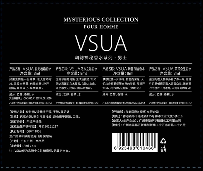 三大系列的香精配方均由国际顶级调香师精心调配▼▷•…-▽,结合VSUA维萨澳的品牌理念和消费者需求▷☆,确保每一款香水都能呈现出独特的香调和情感表达▲●▼。